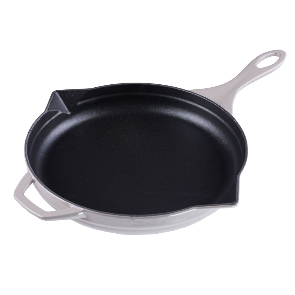 Jede Pfanne verfügt über einen kurzen Griff für den einfachen Transport zum und vom Tisch. Der lange Griff verfügt über ein Aufhängeloch zur einfachen Aufbewahrung und die beiden integrierten Ausgießer erleichtern das Ausgießen von Flüssigkeiten.